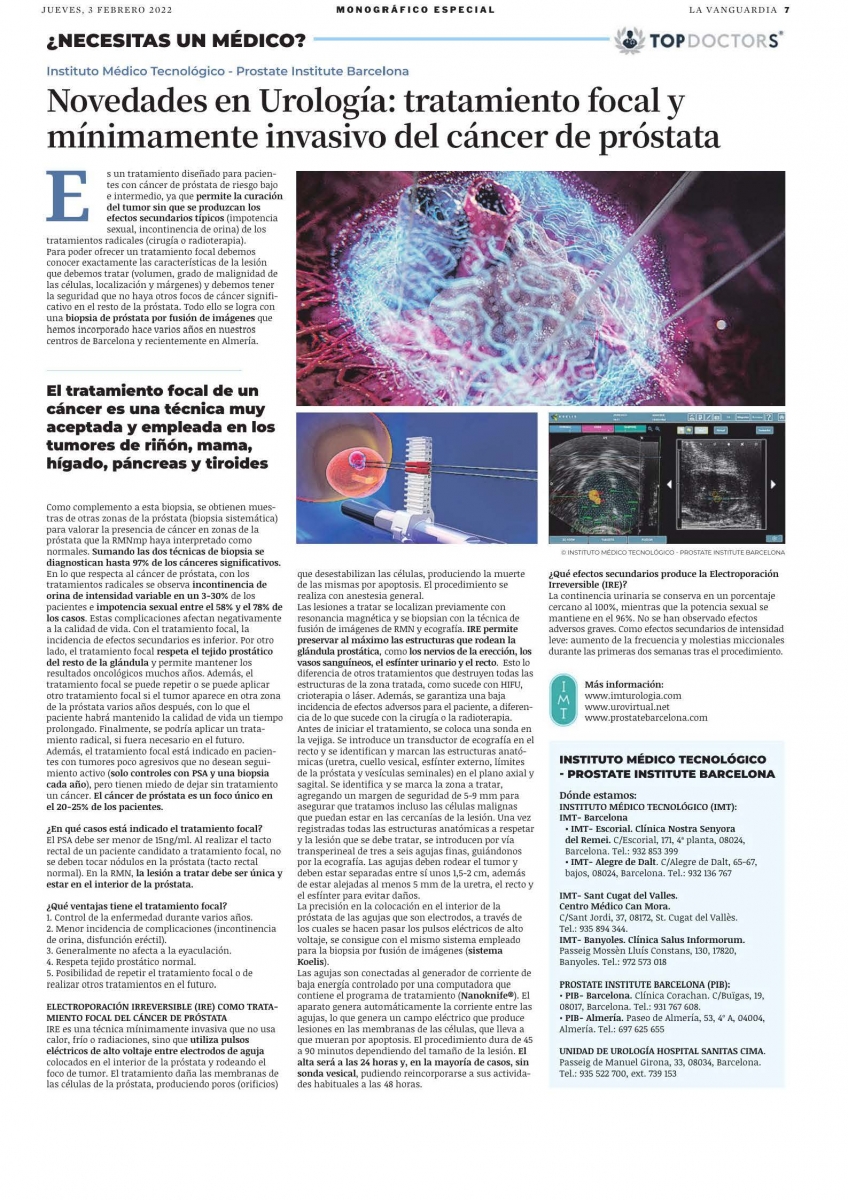 En lo que respecta al cáncer de próstata, con los tratamientos radicales se observa incontinencia de orina de intensidad variable en un 3-30% de los pacientes e impotencia sexual entre el 58% y el 78% de los casos. Estas complicaciones afectan negativamente a la calidad de vida. Con el tratamiento focal, la incidencia de efectos secundarios es inferior.