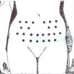 - Seleccioni el lloc on s’injectarà la heparina. Recordi que la injecció no s’ha de donar sempre al mateix punt, si no que aquest ha de variar-se rotatòriament. El dibuix indica els punts en els que es pot posar la injecció.