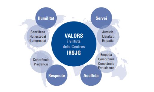 Els quatre valors fonamentals de l'IRSJG formen part de tot el que fem i han de guiar el funcionament de la nostra institució. Aquests valors són Servei, Acollida, Respecte i Humilitat.