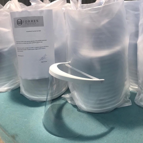 Tot l'equip de la Clínica del Remei vol agrair enormement a l'empresa familiar Calçats Torres, artesans de tota la vida especialitzats a fer les famoses Menorquines, que ens han fet arribar una bona quantitat de pantalles facials que ens ajuden a protegir-nos diàriament.