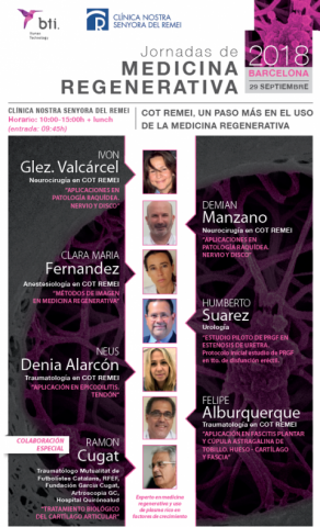 El dia 29 de setembre del 2018 a les 10: 00h la Clínica del Remei juntament amb BTI ha organitzat una interessant Jornada de Medicina Regenerativa adreçada a professionals de la salut.