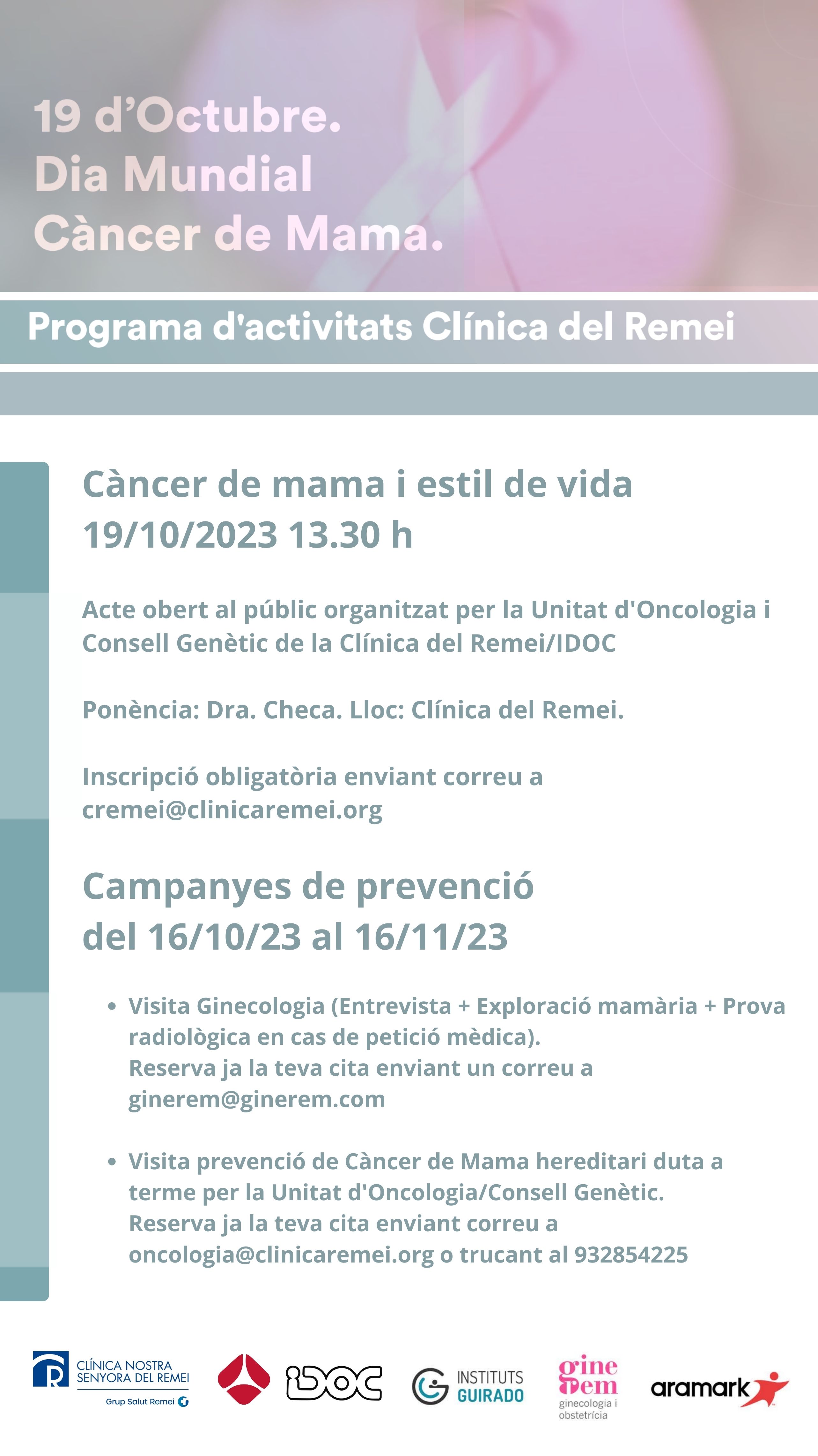 La Unidad de Patología Mamaria y la Unidad de Consejo Genético de la Clínica de Remei/IDOC, quiere concienciar de la importancia de la prevención. El conocimiento de la enfermedad y posibles modificaciones en nuestro estilo de vida, son claves para la prevención.