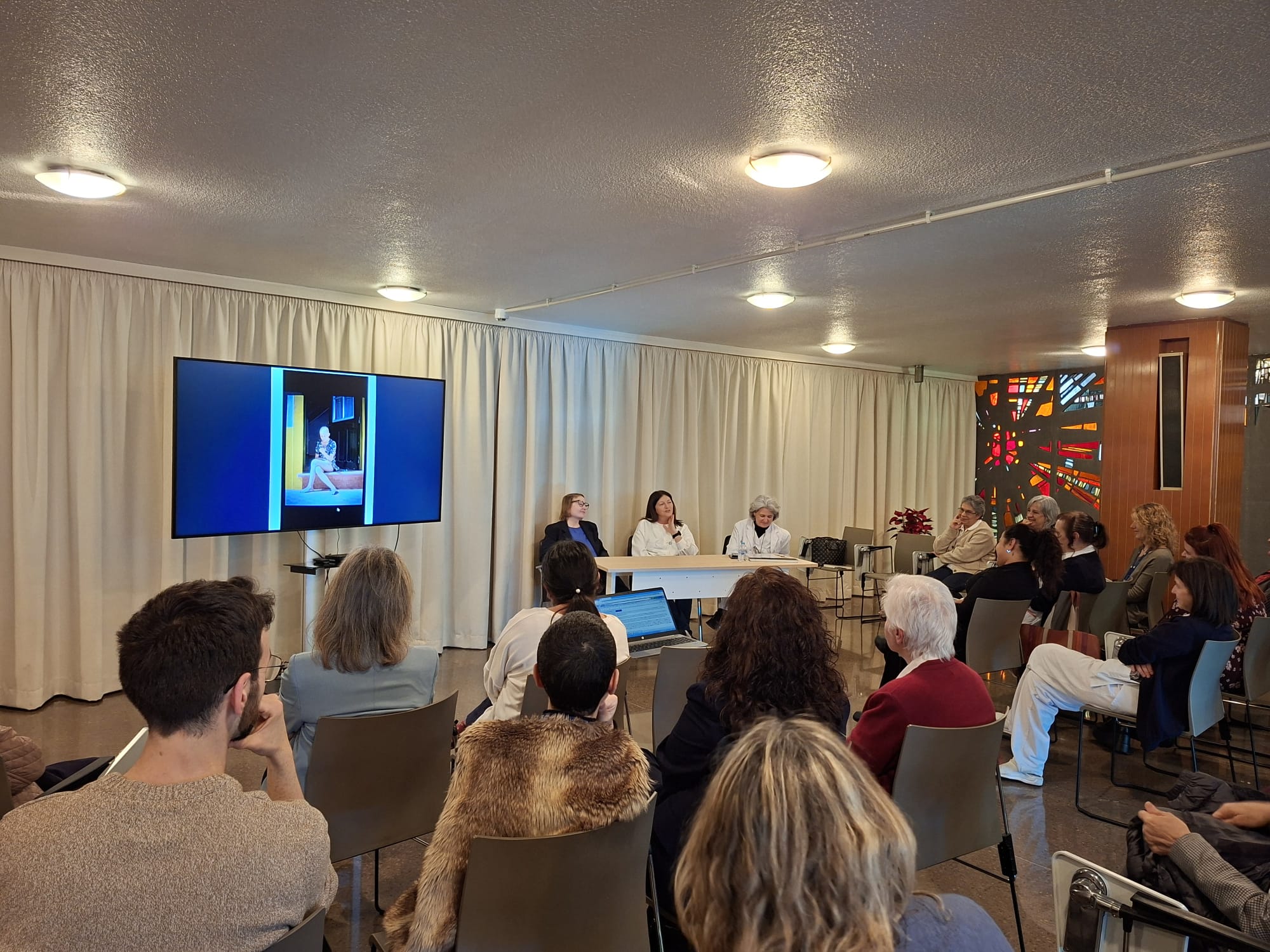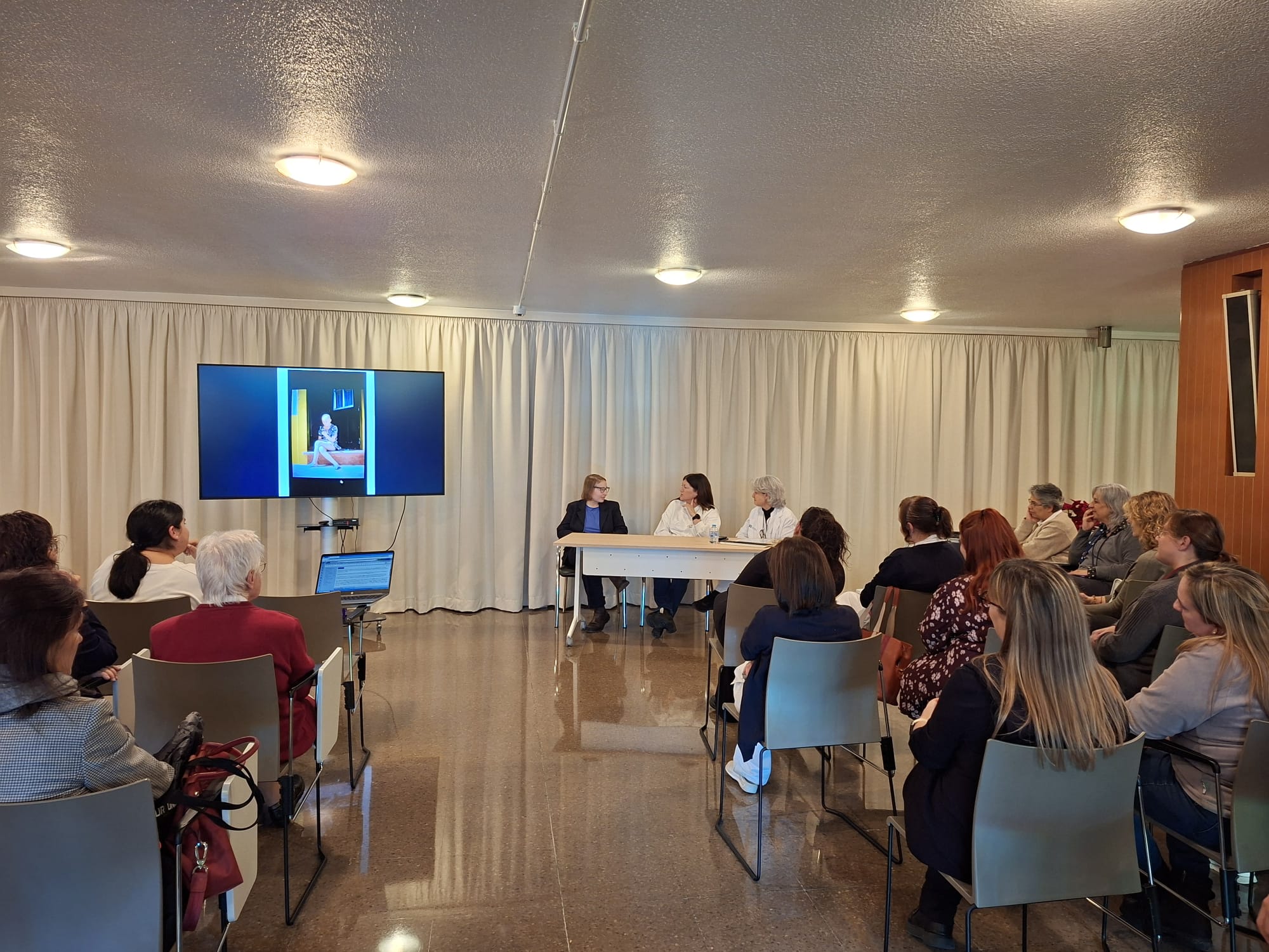 En un ambiente próximo y emotivo, María —que sufrió un tumor cerebral a los 10 años— ha compartido su experiencia personal con la enfermedad, generando un espacio de silencio, escucha y empatía que ha conectado profundamente con todas las personas asistentes. La conversación ha sido muy enriquecedora y ha puesto en valor la importancia de compartir vivencias, cuidarnos y reforzar los vínculos que nos unen como equipo.